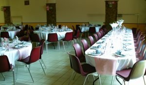 > Le nettoyage de la grande salle est inclus dans les tarifs ci-dessus. Reste à la charge de l’utilisateur le balayage de la grande salle et le nettoyage de la cuisine, des sanitaires, du local technique et du hall d’entrée.